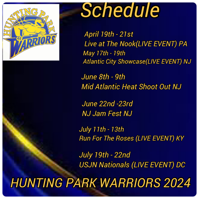 HP WARRIOR EVENT Jul 19 to Jul 22 USJN Nationals (LIVE EVENT, DC) Fri, Jul 19, 2024 7:30 PM Mon, Jul 22, 2024 8:30 PM Google Calendar ICS View Event → Jul 11 to Jul 13 Run FOr Roses (KY Live EVENT) Thu, Jul 11, 2024 7:30 PM Sat, Jul 13, 2024 8:30 PM Google Calendar ICS View Event → Jun 22 to Jun 23 NJ JAM FEST NJ Sat, Jun 22, 2024 7:30 PM Sun, Jun 23, 2024 8:30 PM Google Calendar ICS View Event → Jun 8 to Jun 9 MID ATLANTIC HEAT SHOOT OUT NJ Sat, Jun 8, 2024 7:30 PM Sun, Jun 9, 2024 8:30 PM Google Calendar ICS View Event → May 17 to May 19 ATLANTIC CITY SHOWCASE LIVE EVENT Fri, May 17, 2024 7:30 PM Sun, May 19, 2024 8:30 PM Google Calendar ICS View Event →